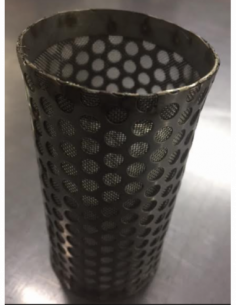 FILTRO 75X28MM DIAM EXT. DE CHAPA PERFORADA INOX A316 DE 5MM DIAM. Y SOBREMALLA A316 DE 0.500MM LUZ