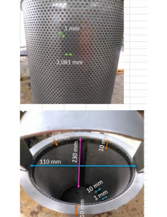 TAMIZ CILÍNDRICO Øext 82,5mm, Øint.76mm LONG.150mm EN AISI304 CHAPA PERFORADA Ø1mm