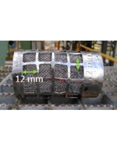 TAMIZ CILINDRICO DIAM. 25MM X 51MM, PERFORACIONES DE 12X12MM Y MALLA INTERIOR DE 63 MIC (230MESH)