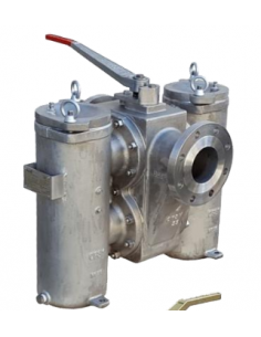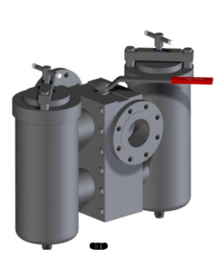Filtro de Doble Cesta DRAC DT SERIES 144 DN40 PN16 para 5m3/h Cesta: AISI 316 con Malla de 40 micras Cuerpo: A215 WCB 2 VáLvulas de Bola de 3 vÍas en "L", integradas en el cuerpo central del Filtro